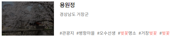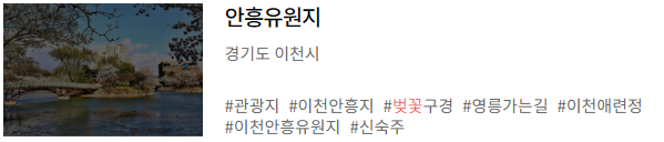 다음으로 각 지역별 벚꽃 명소입니다.(각 사진을 누르면 자세한 정보를 보실 수 있습니다.)