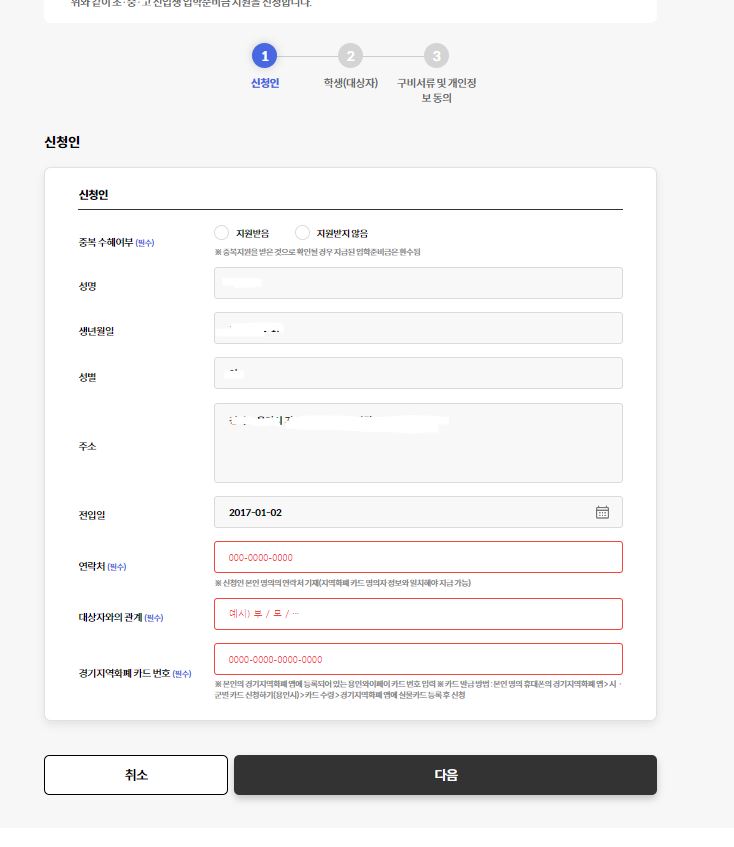 6.자녀의 학교 정보(학교이름, 학반) 입력