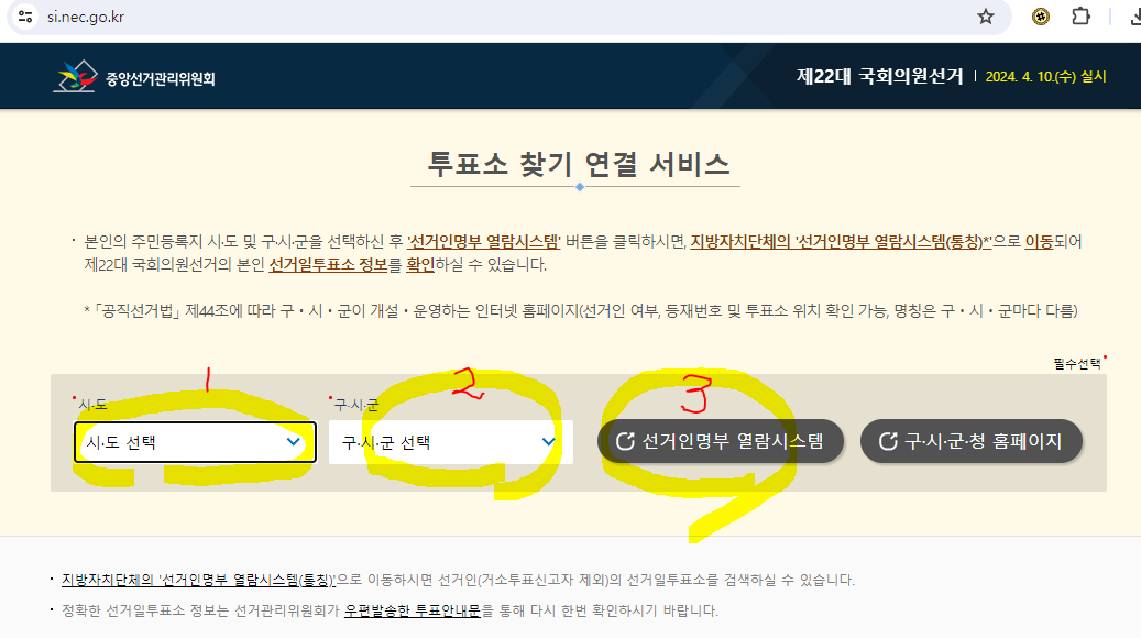 방법2) 중앙선거관리위원회 누리집 '투표소 찾기 서비스'