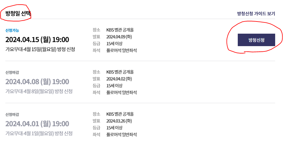 ※KBS홈페이지 회원가입을 미리하시고 로그인을 해야 신청이 가능합니다.