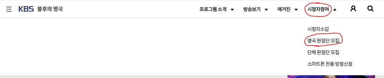 판정단 참여 신청방법은 'KBS'홈페이지 '불후의 명곡'>시청자 참여> '명곡 판정단 모집'에 들어가면 됩니다.